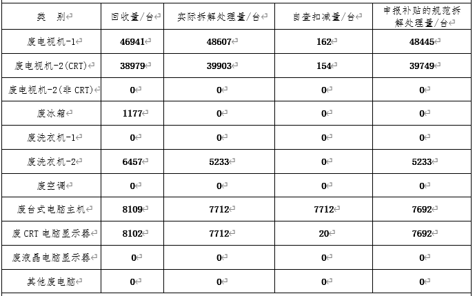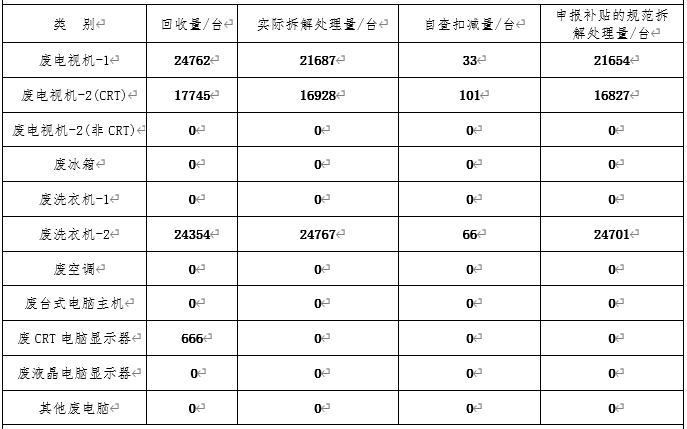 通知:目前我中心已公示關(guān)于2020年第四批次廢棄電器電子產(chǎn)品拆解處理技術(shù)復(fù)核情況,公示表包括